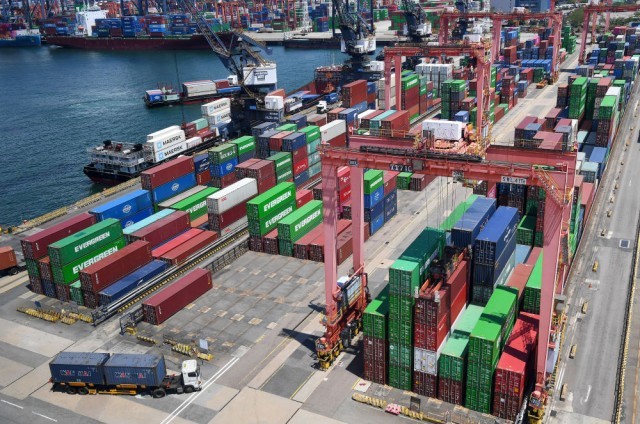 这是5月22日拍摄的香港货柜码头。新华社记者 陈铎 摄